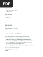 </filter> <filter-mapping> <filter-name>springSecurityFilterChain</filter-name> <url-pattern>/*</url-pattern> </filter-mapping> b)spring-security.xml <http auto-config="true"> <intercept-url pattern="/welcome*" access="ROLE_USER" /> </http> <authentication-manager> <authentication-provider> <user-service> <user name="abc" password="123" authorities="ROLE_USER" /> </user-service> </authentication-provider> </authentication-manager> </beans:beans> c) Controller file @Controller @RequestMapping(value="/welcome") public class HelloController { @RequestMapping(method = RequestMethod.GET) public String printWelcome(ModelMap model) { model.addAttribute("message", "Spring Security hello"); return "hello"; }} 24] Spring JDBC transaction and jdbc jar files + database specific jar file 1] beans.xml <bean id="ds" class="org.springframework.jdbc.datasource.DriverManagerDat aSource"> <property name="driverClassName" value="oracle.jdbc.OracleDriver" /> <property name="url" value="jdbc:oracle:thin:@localhost:1521:XE" ></property>