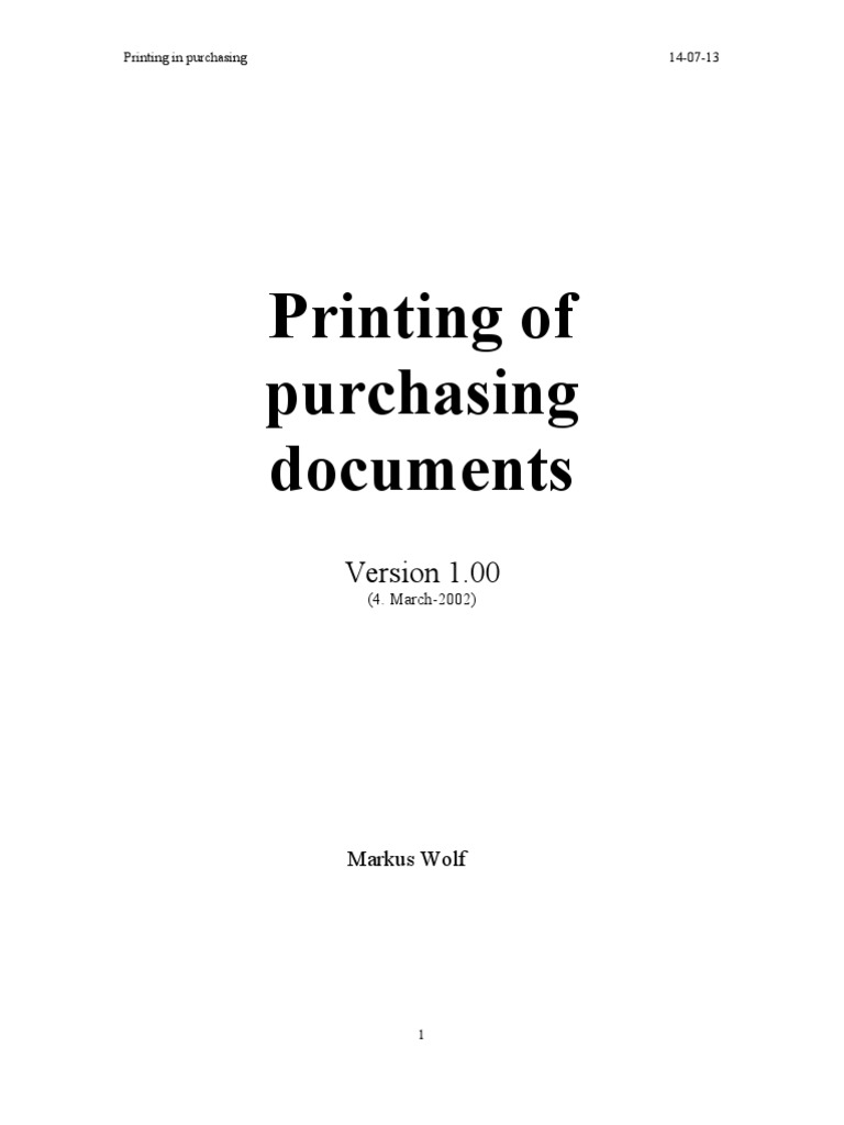The printing program does not only confess with the output of purchasing documents on the printer but with all methods of getting the documents to the vendor. This can be a printout, but also sending a purchasing document by fax or E-mail. The same program and form are used for the output of several documents and processes.