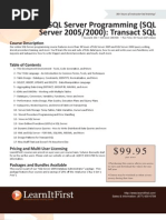 Sub Queries Triggers Trigger Program Structure Field Level Validation Record Level Validation Checking Values against another Table Preventing Changes to a Field Referential Integrity Checks Cascading Delete Updating another Table Error Messages Stored Procedures Executing a Stored Procedure Passing Parameters Returning a Value Passing Parameters by Reference Variables CASE Expression Cursors System Procedures Extended Procedures Extended Mail Procedures SQL Server Optimisation Query Optimisation Clustered Indexes Locking Issues Part III SQL Server Administration Security Implement Integrated Security Server Logins Database Users and Groups Database Object Permissions Distributed Management Framework Table Object CREATEOBJECTNEW Problem
