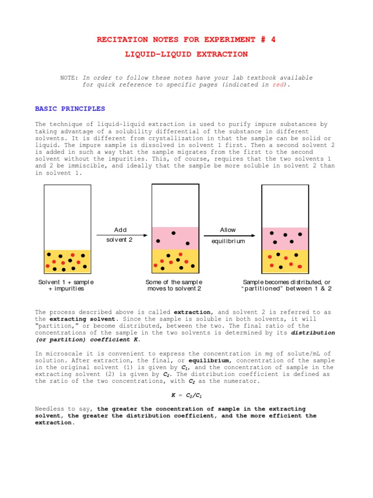 RECITATION NOTES FOR EXPERIMENT # 4 LIQUID-LIQUID EXTRACTION