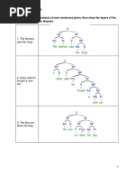Note the option of having a CP in place of an NP at the beginning of a sentence. Note too that Ive brought the NP rule into conformity with the principle of endocentricity. Our earlier rule (i.e., NP (D) (Adj) N (PP) ) permitted an adjective without an adjective phrase. Ive replaced (Adj) with (AP) to correct for this. Well see the empirical support for that change shortly. The second phrase well need are ones headed by adverbs. Adverbs are a word class that is sometimes dened on the position left adjacent to adjectives, as in (42). (42) a. b. a. b. A very happy child The extremely large boat I have deliberately misled. I have noticeably erred.