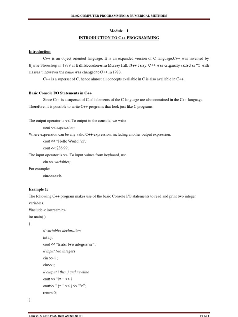 Module I INTRODUCTION TO C++ PROGRAMMING