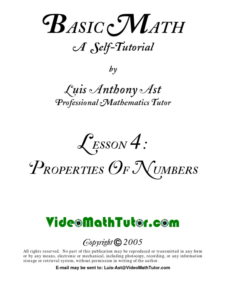 Video Math Tutor: Basic Math: Lesson 4 - Properties of Numbers