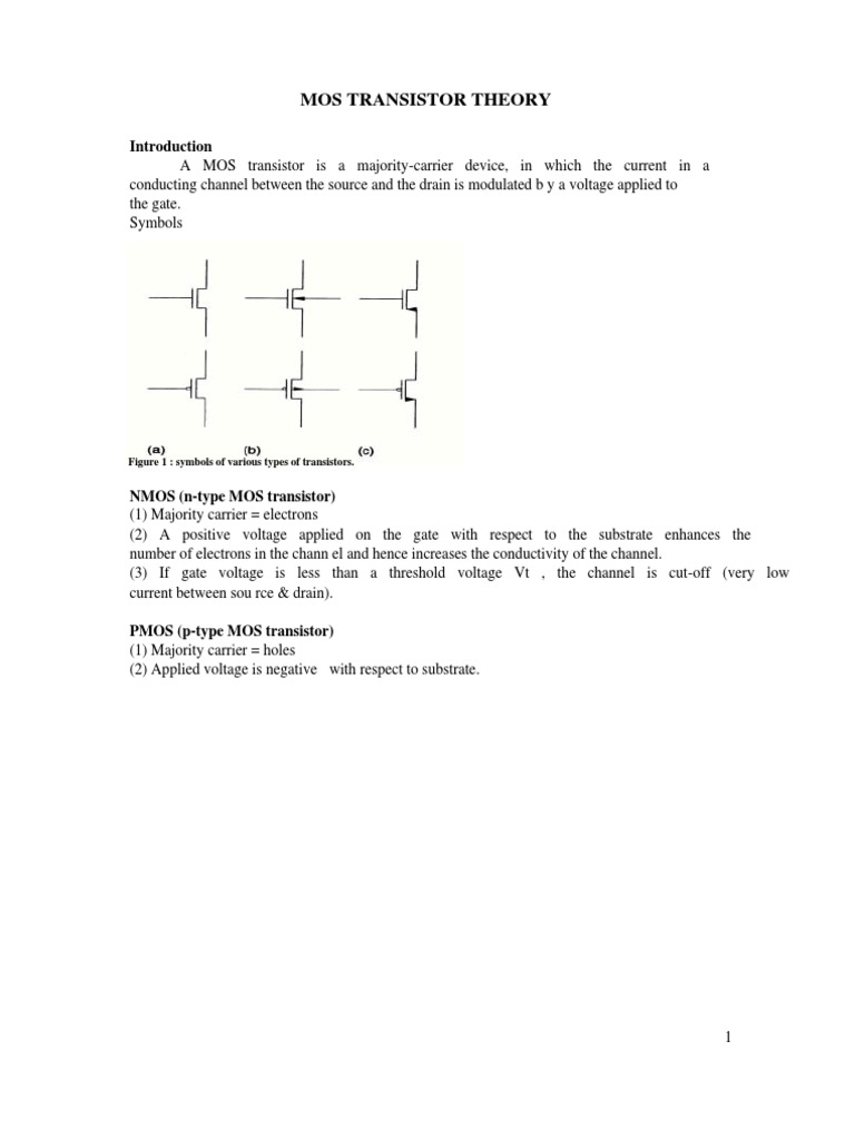 Introduction A MOS transistor is a majority-carrier device, in which the current in a conducting channel between the source and the drain is modulated b y a voltage applied to the gate. Symbols
