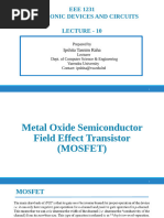 where Vt is the threshold voltage, V t(0) is the threshold voltage without body effect is the body coefficient factor F F is the fermi potential V sb is the potential difference between source and substarte. If Vsb is zero, then Vt=Vt(0) that means the value of the threshold voltage will not be changed. Therefore, we short circuit the source and substrate so that, Vsb will be zero. Subthreshold region: For Vgs<Vt also we will get some value of Drain current this is called as Subthreshold current and the region is called as Subthreshold region. Channel length modulation: The channel length of the MOSFET is changed due to the change in the drain to source voltage. This effect is called as the channel length modulation. The effective channel length & the value of the drain current considering channel length modulation into effect is given by,