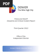 This is the second Compliance Directors monthly report, as required by Judge Thelton Hendersons Court Order of December 12, 2012 (as amended). This report differs somewhat from the June report format, reflecting the continuing evolution and refinement of our working relationship with OPD, the steps we will follow before signing off benchmark completions, and the manner in which we organize and present the monthly results. July was a month in which the Oakland Police Department continued its commendable efforts towards completion of benchmark items. The relationship between OPD and the Compliance Directors Office remained open and cooperative, and much progress was achieved across a broad range of projects. Last months report made specific mention of the difficulties encountered by my office in dealing with City Hall on several issues. Those comments seem to have improved the relationship, since no new occurrences of friction occurred in July. This noteworthy progress was somewhat offset by OPDs disappointing performance in preventing the vandalism that occurred in downtown Oakland following the Trayvon Martin verdict. Steps necessary to prevent future recurrences of this will be addressed in this report.