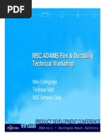 In MNF (MD DB), the data are defined with respect to the FE origin. MNFXFORM is a tool to translate, rotate or mirror the MNF (MD DB) with respect to the FE origin. Please be noted that this is different from specifying position and orientation of a flexible body in A/View, which only changes how the FE origin is positioned and oriented and could not change how the flexible body is positioned and oriented with respect to the FE origin. Without this tool, the only way user can change how a flexible body is positioned or oriented with respect to its FE origin is to go back to FE preprocessor to transform the FEA model and generate a new MNF (MD DB). Some of the benefits this tool provides include: 1. In high speed rotation simulation, the simulation speed can be significantly improved if the rotation axis is aligned with the Z axis of the FE origin. With MNFXFROM, user can easily rotate the flexible body to this configuration. 2. It involves some extra efforts to generate a mirrored copy of an MNF (MD DB) from FEA code. With this tool, this task becomes trivial. Adams/Car users whose models often involve symmetrical parts will find this tool is very handy. MNFXFORM Usage Following is the usage of the mnfxform command under flextk: mnfxform <option> <input_flex_file> <output_flex_file> <parameters> [-offset inc] [-id nid n1 n2 n3 ...]