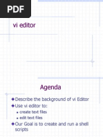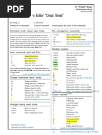 On this page Modes of Operation Entering and Leaving vi Files Basic Cursor Movement Inserting Text Deleting, Retrieving, and Undoing Changing, Replacing,and Copying Text Moving Around in a File File Manipulation Searching For Text Setting Options Common Option Settings Modes of Operation vi, the Unix visual editor, has two modes of operation: 1. Command mode--This is vi's initial and normal state. In this mode, most commands you type are not displayed. Only commands preceded by :, /, or ! are displayed on the status line, which also gives feedback about input, output, and large changes. Execute these commands with <Return> or <Esc>. Use <Esc> to change from text input mode to command mode (when in doubt, press <Esc>). 2. Text input (Insert) mode--This mode is entered by pressing a, A, i, I, o, or O. Press <Esc> to end text input mode and return to command mode. The following notations are used in this document (variables appear in italics):