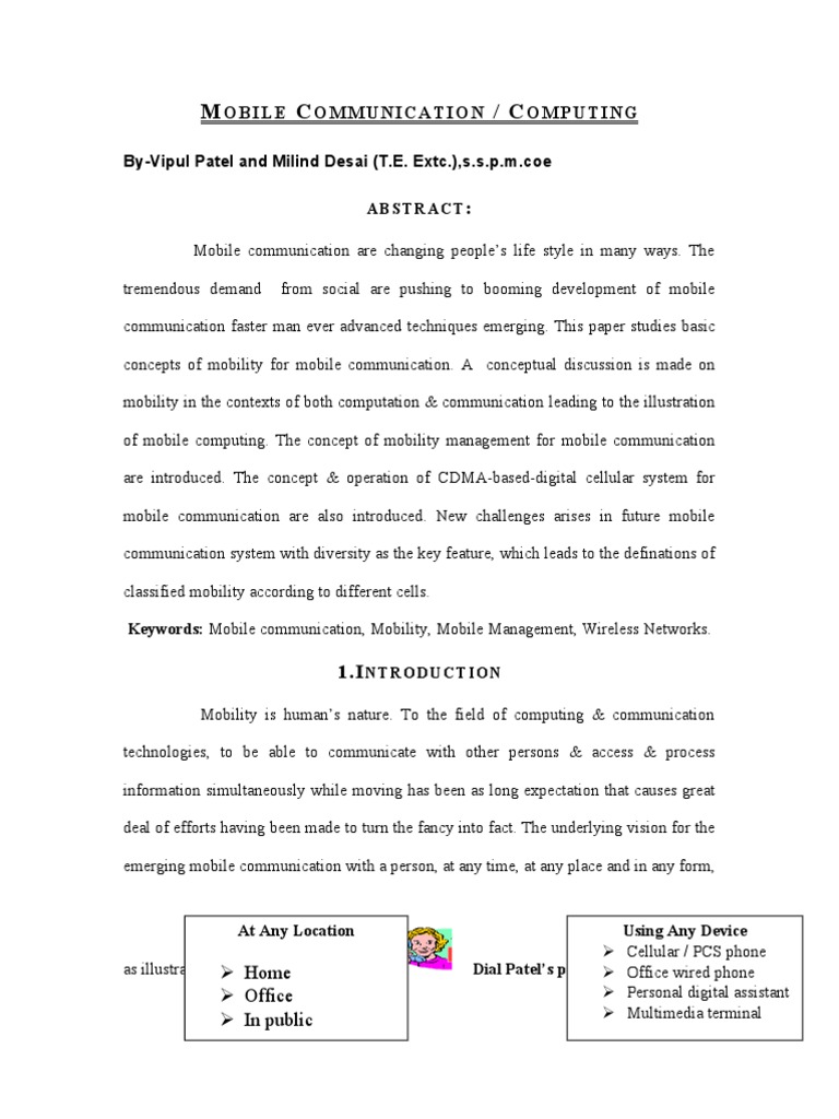 Mobility is humans nature. To the field of computing & communication technologies, to be able to communicate with other persons & access & process information simultaneously while moving has been as long expectation that causes great deal of efforts having been made to turn the fancy into fact. The underlying vision for the emerging mobile communication with a person, at any time, at any place and in any form,