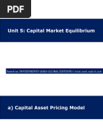 i. Can test a model in two ways: 1. Normative: tests examine the assumptions of the model. 2. Positive: tests examine the predictions. ii. A model is robust with respect to an assumption if its predictions are not highly sensitive to violation of the assumption. iii. The CAPM implications are embedded in two predictions: 1. The market portfolio is efficient. 2. The security market line accurately describes the risk-return tradeoff, that is, alpha values are zero. d. Investments Industry and the Validity of the CAPM i. CAPM provides discount rates that help security analysts assess the intrinsic value of a firm. ii. Practitioners use a CAPM 1. If they use a single-index model and derive optimal portfolios from ratios of alpha forecasts to residual variance CAPM valid. 2. Use a multi-index model, then they use one of the extensions of the CAPM or arbitrage pricing theory. Econometrics and the Expected Return-Beta Relationship a. Econometric problems could lead one to reject the CAPM even if it were perfectly valid. b. Problems with the estimation of beta coefficients: i. When residuals are correlated, standard beta estimates are not efficient. 1. Replace OLS with GLS ii. Alpha and beta, as well as residual variance, are likely time varying c. Beta of a security can be decomposed into two components: i. Measures sensitivity to changes in corporate profitability. ii. Measures sensitivity to changes in the markets discount rate. Extensions of the CAPM a. The Zero-Beta Model i. Efficient Portfolios have: 1. Any portfolio that is a combination of two frontier portfolios is itself on the efficient frontier. 2. The expected return of any asset can be expressed as an exact linear function of the expected return on any two efficient-frontier portfolios P and Q according to the following equation: a.