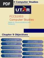 telephone lines. These lines don't recognize zeros and ones. They only understand what are called analog signals. To change the signals back and forth between analog and digital transmission methods, you need a modem. The purpose of a modem (modulator/demodulator) is to: Change digital signals from computers to analog signals that telephone lines can carry Change analog signals back to digital signals that the computer can understand Communication Channels A channel is the facility through which information is transmitted between physical locations in a network. That's just a fancy way of saying that a channel is the highway on which data travel. Think again about the interstate highway systems. The road surface on which you drive is a good analogy to a channel. The road can be built from concrete, blacktop, or combination of the two. The channels on the Information Superhighway can be built using combinations of materials such as wires, microwave stations, and satellites. Twisted Wire, Coaxial Cable, Fiber-optic Cable Twisted wire and coaxial cable are common transmission media that have been around for years. Twisted wire is used in your telephone. If you've ever hooked up a stereo system or connected a VCR to a television, you've used coaxial cable. Fiber-optic cable is the newest type of transmission medium. The text explains its advantages and disadvantages. One other major difference between them is in the area of security. Signals transmitted over twisted wire and coaxial cable can be intercepted easily because they use electrical and magnetic impulses to transmit data. Fiber-optic cable uses pulses of light. So far, no one has figured out a way to intercept light pulses in order to intercept data. Wireless Transmission Some experts call us a wired nation. If you consider all the methods we use to communicate, we should be referred to as wireless. Our pagers and cellular phones use microwave and satellite technologies to transmit voice and data communications from one place to another. We have personal communication services (PCS), mobile data networks, and personal digital assistants (PDAs) to help us compute on the go. Now when people say they are "going to the office," it could just as well be their car or truck! Wireless communications are becoming extremely popular because they offer people the "freedom to roam." The most interesting demonstration that shows how common this technology is becoming is the case of expectant parents. The husband can carry a beeper and know instantly when the wife needs to leave for the hospital. Have you seen the commercial that shows the expectant father carrying a cell phone on an oil rig hundreds of miles out to sea? He's telling his wife, "Now is not a good time to start your labor." An interesting promise of what the future holds is the telecommunications companies' plan to combine the various communication appliances into one with only one phone number. Many of us have a phone number at home, a separate cell phone with its own number, and yet another phone at work with a third number. Then we have a computer connection at work, one at home, and possibly a portable computer. The plan is to combine all of these into a single connection with a single phone number that travels with you wherever you go.
