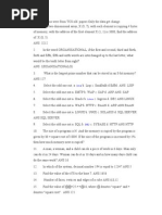 19. G(0)=-1, G(1)=1, G(N)=G(N-1) - G(N-2), G(5)= ? 20. What is the max possible 3 digit prime number? 21. A power unit is there by the bank of the river of 750 meters width. A cable is made from power unit to power a plant opposite to that of the river and 1500mts away from the power unit. The cost of the cable below water is Rs. 15/per meter and cost of cable on the bank is Rs.12/- per meter. Find the total of laying the cable. 22. The size of a program is N. And the memory occupied by the program is given by M = square root of 100N. If the size of the program is increased by 1% then how much memory now occupied? 23. In Madras, temperature at noon varies according to -t^2/2 + 8t + 3, where t is elapsed time. Find how much temperature more or less in 4pm to 9pm. 24. The size of the bucket is N kb. The bucket fills at the rate of 0.1 kb per millisecond. A programmer sends a program to receiver. There it waits for 10 milliseconds. And response will be back to programmer in 20 milliseconds. How much time the program takes to get a response back to the programmer, after it is sent? 25. A man, a woman, and a child can do a piece of work in 6 days. Man only can do it in 24 days. Woman can do it in 16 days and in how many days child can do the same work? 26. If the vertex (5,7) is placed in the memory. First vertex (1,1) s address is 1245 and then address of (5,7) is ---------27. Which of the following are orthogonal pairs? a. 3i+2j b. i+j c. 2i-3j d. -7i+j 28. If VXUPLVH is written as SURMISE, what is SHDVD? 29. If A, B and C are the mechanisms used separately to reduce the wastage of fuel by 30%, 20% and 10%. What will be the fuel economy if they were used combined. 30. What is the power of 2? a. 2068 b.2048 c.2668 31. Complete the series. 3, 8, --, 24, --, 48, 63 32. Complete the series. 4, -5, 11, -14, 22, --33. A, B and C are 8 bit nos. They are as follows: A 1 1 0 1 1 0 1 1 B 0 1 1 1 1 0 1 0 C 0 1 1 0 1 1 0 1 Find ( (A-B) u C )=? Hint : A-B is {A} {A n B} 34. A Flight takes off at 2 A.M from northeast direction and travels for 11 hours to reach the destination which is in north west direction. Given the latitude and longitude of source and destination. Find the local time of destination when the flight reaches there? 35. A can copy 50 papers in 10 hours while both A & B can copy 70 papers in 10 hours. Then for how many hours required for B to copy 26 papers?