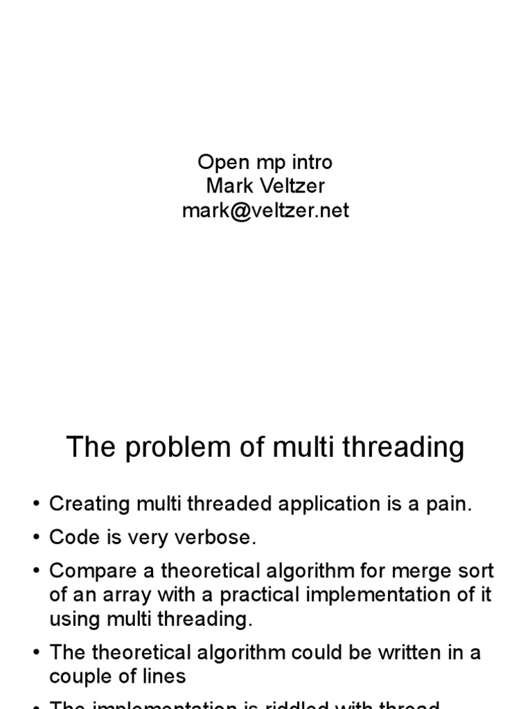 Creating multi threaded application is a pain. Code is very verbose. Compare a theoretical algorithm for merge sort of an array with a practical implementation of it using multi threading. The theoretical algorithm could be written in a couple of lines The implementation is riddled with thread creation, termination, waiting and the algorithm is hidden inside the code.