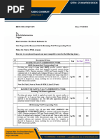 Sub : QUATATION FOR INTERIOR JOB WORK AT GROUND FLOOR AREA Dear Sir, This is regarding the above statted matter. We are quoating our comparative prices for your kind consideration & perusal. No. Description Qty. Unit Rate A 1a CIVIL WORK Providing & Making of the 150mm thk. Brick wall with cement morter 1:4 (1 cement : 4 coarse sand), including lintels for doors Providing & Making of the 9" thk. Brick wall with cement morter 1:4 (1 cement : 4 coarse sand), including lintels for doors Providing & Applying 1/2" thk smooth plaster on brick / concreat wall BRICKBAT COBA filling of average thickness 150mm after laying of soil pipes, with 1:4 cement sand morter at toilet & pantry area Providing & Laying cement based water proofing treament up to 4' - 0" height of toilet & floor area & pantry aera wall by surface method in 12mm thk. Cement morter with ten years guarantee Providing & erecting 600mm deep pantry counter in shape & design with approved 18mm thk. Granite top with 1 1/2" thk. Double round moulding of approved shake, making cut - out for sink, plumbing fixture ,& with granite vertical & marble self with edge polishing (Basic cost granite 145/- per Sq.ft) Providing & erecting 600mm deep wash basin counter to shape & desigen with18mm thk. granite top with 3/4" cement morter bedding & cuddappa base , granite / marine ply fasia making cut-out for sink (Basic cost granite 145/- per Sq.ft) 36.00 Sq.ft 0.00