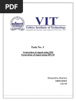 DeltaModulation: We all know that every digital technique requires the process known as sampling. Delta modulation is also no exception from this. But in delta modulation we use the sampling rates very much greater than the Nyquist rate. This is called as oversampling. Over sampling provides the high correlation between the adjacent samples of the sampled signal. This provides the chance for us to implement the simple quantization technique to construct the encoded signal for the incoming signal. We can describe the DM as the process of approximating the incoming signal as the staircase approximation of the over sampled version of the incoming signal. The process of DM includes the finding of the difference between the incoming signal and the approximated signal. Then the difference is quantized into the two levels only they are corresponding to the positive and negative differences between the incoming and approximated signal. At any instance if the approximated signal lies below the actual value of the incoming signal then the approximation value is raised by . In case the approximation lies above the actual value of the incoming signal then its value will be diminished by . The condition posed here is the values of the samples present side by side do not change too rapidly, and the stair case approximation lies within the of the input signal. Mathematical representation: Take the variables as the m(n), mq(n), e(n), eq(n). the conventions fallows as m(n) represents the sampled incoming signal, mq(n) denotes the stair case approximated incoming signal, e(n) stands for error signal representing the difference between the present sample of the incoming signal and the latest approximation to it, eq(n) is the quantized version of e(n). And we all know sgn(x) is the signum function of x. at last the output of the quantizer is encoded to produce the DM signal. Here the notations fallowed are discrete time notations because we applying the operations on the sampled version of the incoming signal which is in discrete nature. e(n)=m(n)-mq(n-1) eq=.sgn(e(n)) mq(n)=mq(n-1)+eq(n) =(2*pi*am)/(fm*fs) Fm is the message signal frequency and fs is the sampling frequency, and is the step size. Matlab commands: Sign(x) This is the matlab command for the signum function of x but on the paper we represent it as sgn(x)