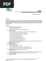 1.1 Overview ALi's M5621 USB2.0 IDE Device controller provides a cost-effective solution for high-speed USB2.0 based application, such as USB-to-IDE bridge interface, scanner, printer, digital still camera or multi-function peripheral /communication /networking systems. With built-in USB2.0 transceiver and related high-speed circuitry, M5621 also integrates four user-configurable endpoints with bi-directional ping-pong buffers for maximized USB2.0 throughput operation. With extended design flexibility, M5621 can be configured for three different operation modes, including working as a USBto-IDE bridge interface, as a PIO/DMA based device controller, or as a UTMI-compliant USB2.0 standalone transceiver device. Through these highly flexible features and capabilities to work with embedded controller, external microcontroller or ISA-based Device CPU, M5621 is fully capable of achieving a most compact and yet cost-effective solution for varieties of high-speed-oriented peripheral system applications. 1.2 Features ! ! ! USB Specification revision 2.0 Compliant Support High-speed(HS) & Full-speed(FS) Operation with on-chip USB transceiver, SIE & UBL Supports 4 User-Configurable Endpoints for bulk, interrupt, control transfers to allow bulk-transfer-based device operation for IDE device, scanner, printer, camera or multi-function-peripheral application - Endpoint 0 : 64-byte FIFO support for Control transfer - Endpoint A : 512-byte Ping-Pong buffers for Bulk-In transfer - Endpoint B : 512-byte Ping-Pong buffers for Bulk-Out transfer - Endpoint C : 8-byte FIFO support for Interrupt transfer or Supplementary Bulk-In Transfer Endpoint ! ! Built-in High-performance Micro-controller Engine for interface, flow & multi-functional control Built-in USB2.0-to-IDE Interface Controller with general IDE interface & bulk-only transport of USB mass storage class support upto UDMA66 for storage devices as DVD/CD-ROM, CD-R/W, Harddisk and Compact Flash device, etc. ! ! ! ! ! Built-in PIO/DMA-based Device Controller with industry-standard 8/16-bit PIO/DMA & Multi-word DMA supported for standard MCU/DCPU operation Configurable Standalone UTMI-compliant USB2.0 PHY Operation Supported Optional External USB ID EEPROM, External Program ROM Interface & GPIOs Control Supported Built-in Clock Synthesizer for using low-cost 12Mhz crystal or external 12Mhz clock sources 100-pin TQFP or 64-pin TQFP package