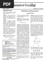 the parameters m and n, and in particular the radiuses of k1 and k2 which are respectively equal to (m2 +1)/2 and (n2 + 1)/2. For example, the equations of k1 and k2 are x2 + y2 +2mx (m2 +1)y + m2 =0 x2 +y2 2nx (n2 +1)y + n2 = 0 the radical axis PQ is 2x + (n m)y + m n = 0. So, the problem from the Iberoamerican Mathematical Olympiad ask for the collinearity of the points P(0, 1), D((mn 1)/(m + n) , m(n2 + 1)/(m+n) ) and C( n, n2 + 1) And this is easily checked; in the problem from the I.M.O., the coordinates of the point E are ( 0 , -1) and it is necessary to check that the two points M ( 2(1-mn)/(m+n) , 1) and N (2(mn 1)/(m+n) , 1) Are at the same distance from E, but this is now trivial . The computations for the first (chronologically speaking) problem are more complicated, but a program as MAPLE is of valuable help. The coordinates of the point R quoted in the problem are R( 2m(mn 1 )/(m2 + 1) ; (m2 + n2 + 2)/(m2 + 1) ) And those of the circumcenter K of the circle PQR, K( (mn 1)/(m+n) ; m(n2 + 1)/(m2 + 1) ) And now again is easy to chek that BP is perpendicular to PK and BR is perpendicular to RK. Finally, a few words for explain why I write the paper The Power of the Analytical Geometry as an Olympiad training session : in the educational system of my country, the Geometry has almost disappeared. So, our students only have as geometrical weapons for attack a geometrical problem those proofs of the analytical geometry, which, like Descartes said, allow us solve all the geometrical problems.