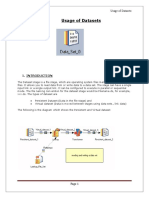 contains all the records written by a single DataStage job. So a segment can contain files from many partitions, and a partition has files from many segments. The descriptor file for a data set contains the following information: Data set header information. Creation time and data of the data set. The schema of the data set. A copy of the configuration file use when the data set was created. For each segment, the descriptor file contains: The time and data the segment was added to the data set. A flag marking the segment as valid or invalid. Statistical information such as number of records in the segment and number of bytes. Path names of all data files, on all processing nodes. This information can be accessed through the Data Set Manager. It will act as a lookup also. By using orchadmin rm <<path>>/<<dataset name>> command you can delete the Data Set from the UNIX. You can Append or Over write the DataSet. Through Data Set management utility you can delete a partition or Segment or entire Data set. The stage can have a single input link or a single output link. It does not support reject link. It can be configured to execute in parallel or sequential mode. As a source you cannot specify the partition to read data. As a target you can specify the partition technique which is to be used. DataSet cannot maintain the unique records. If you send the duplicate records to it then it contains the duplicate records as it is. Each time you can change the configuration file and can load the data into same dataset. But for Append it will contain the config file details of config files used while it was created first time. For overwrite it will have the new config details only in descriptor file If you set the update policy to append and send the more no.of columns data than it contains the it takes the data for existing matching columns and load into dataset and logs the warning.