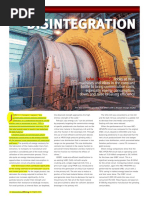 Rolls crushers are now emerging as the latest, most powerful and most efficient type of crusher, normally acting in the role of tertiary crusher. The current interest is due to the recent success of the studded roll design, which has overcome many of the roll wear problems that were severely hampering the success of this type of crusher. With the ability to operate a single crusher at +5MW (the most powerful cone crusher currently available is 1 MW), one single rolls crusher has the potential to replace many cone crushers operating in parallel to achieve the same duty. Essentially a rolls or HPGR crusher consists of two parallel rotating rolls turning together (in opposite directions and turning in the direction of the downward material flow through the centre), with feed being directed through the moving gap between them. One roll is fixed, and the other moveable, using hydraulic pressure. As the ore moves through the gap, the hydraulic force behind the moveable roll acts to crush the particles as they are forced together into a crushed particle bed. Each roll is equipped with its own motor, up to 2.5MW on each. One single rolls crusher can process up to 2,000 tph of ore being fed to it. Operating with high pressures normally results in a product that contains a significant amount of ultra-fines (crushed particles less than 1mm), which provides a favourable ore size distribution for ball mill feed.