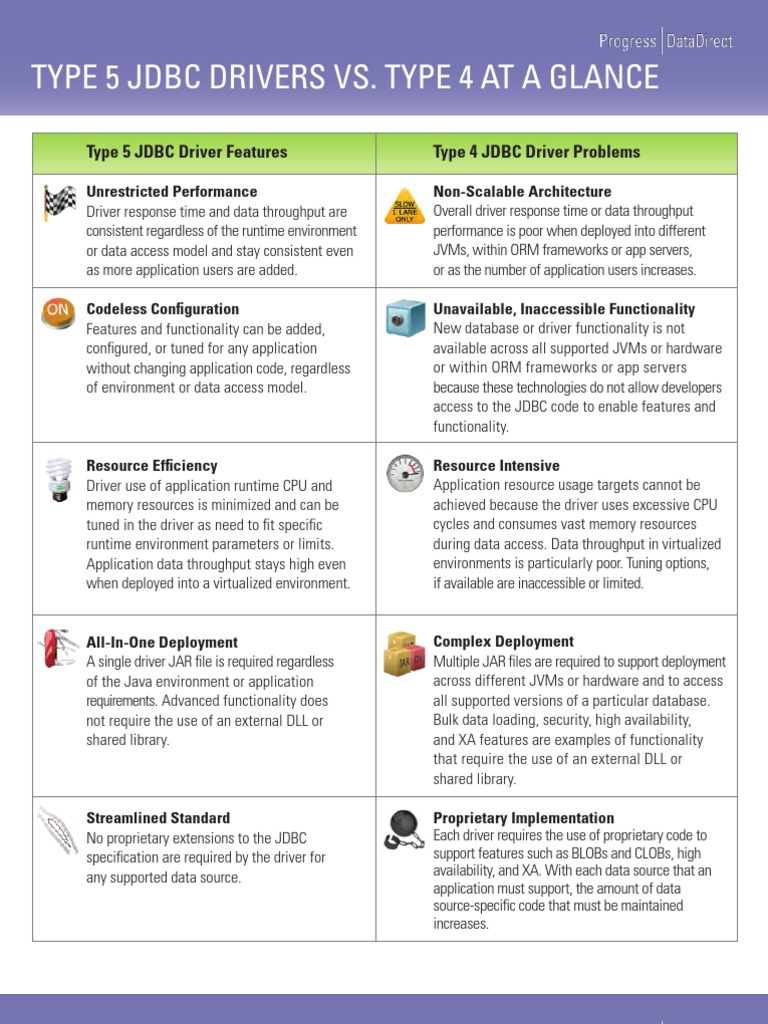 TYPE 5 JDBC DRIVERS VS. TYPE 4 AT A GLANCE
