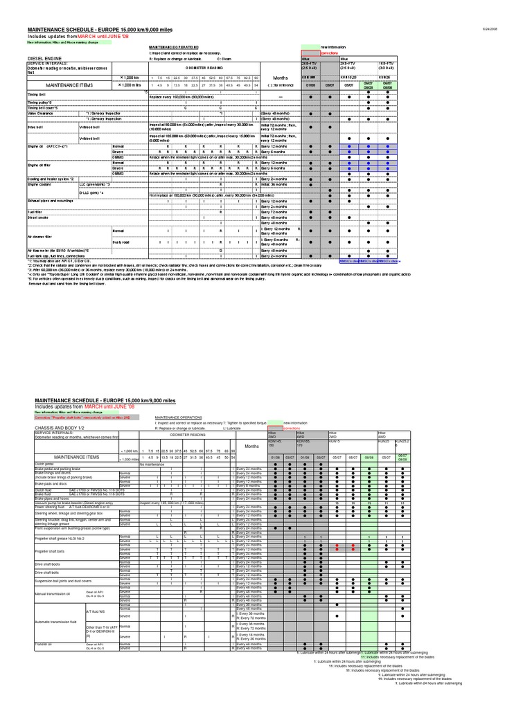 MAINTENANCE SCHEDULE - EUROPE 15,000 km/9,000 miles Includes updates from MARCH until JUNE '08