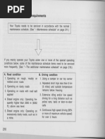 Air flow meter (for EURO IV vehicles)*5 S Every 48 months Fuel tank cap, fuel lines, connections I I I Every 24 months *1: You may also use API CF, CE or CD. NMSC's choi NMSC's choi NMSC's choice *2: Check that the ratiator and condenser are not blocked with leaves, dirt or insects; check radiator fins; check hoses and connections for correct installation, corrosion etc.; clean if necessary *3: After 60,000 km (36,000 miles) or 36 months, replace every 30,000 km (18,000 miles) or 24 months. *4: Only use "Toyota Super Long Life Coolant" or similar high quality ethylene glycol based non-silicate, non-amine, non-nitrate and non-borate coolant with long life hybrid organic acid technology (= combination of low phosphates and organic acids) *5: For vehicles often operated in extremely dusty conditions, such as mining. Inspect for cracks on the timing belt and abnormal wear on the timing pulley. Remove dust and sand from the timing belt cover.