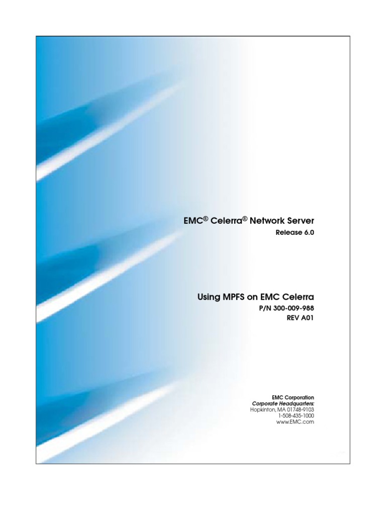 This document is part of the Celerra Network Server information set and is intended for use by system administrators responsible for supporting High Performance Computing (HPC), grid computing, distributed computing virtualization, or simply backing up file systems by using MPFS. Topics included are: