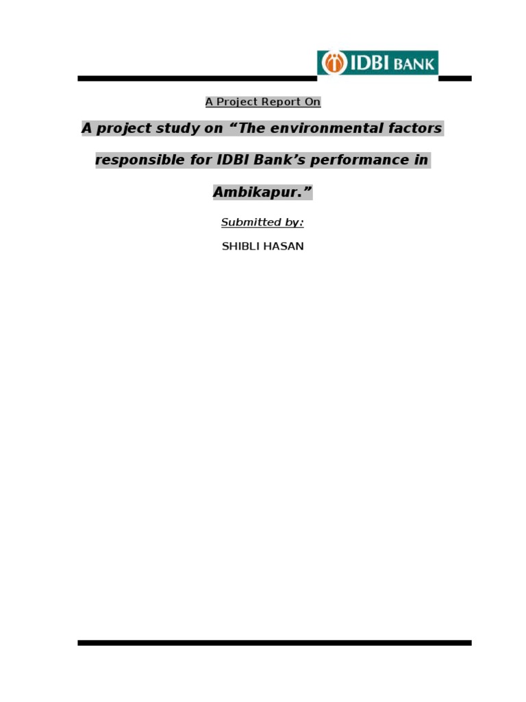A project study on The environmental factors responsible for IDBI Banks performance in Ambikapur.