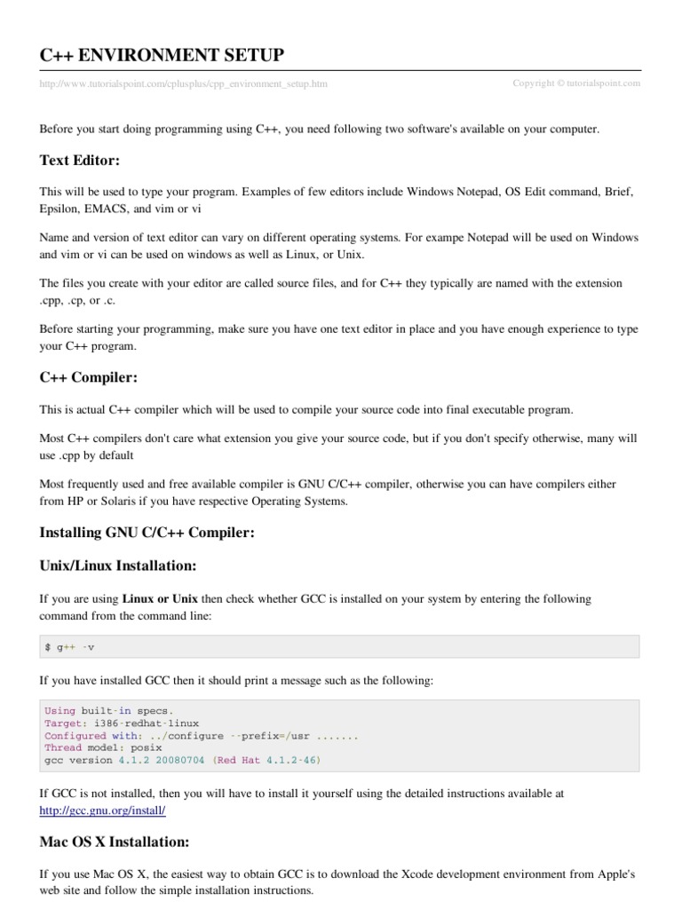 http://www.tutorialspoint.com/cplusplus/cpp_environment_setup.htm