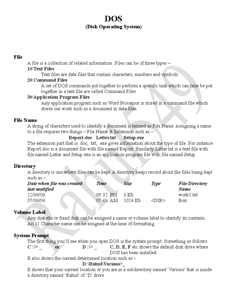 D:\Rahul>dir Shows directories of Rahul directory of ‘D’ drive.