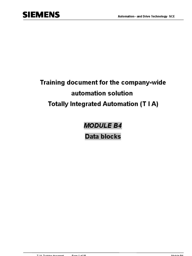 • Basics of PLC- Programming with STEP 7 (e.g. Module A3 - ‘Startup’