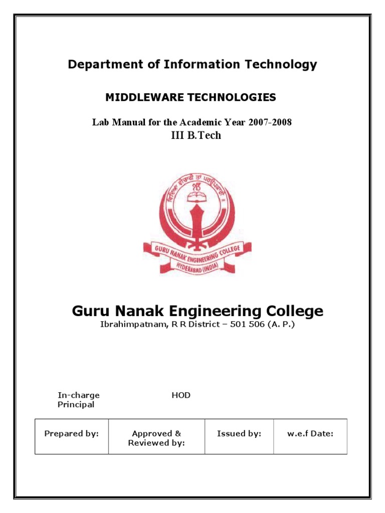 Department of Information Technology Lab Manual for the Academic Year 2007-08 (In accordance with JNTU syllabus)