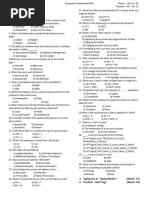 19. Which key helps us to move diagonally left upward in a folder? a) pgUp b) End c) Home d)Pg Down 20._____ is a power saving state that allows a computer to quickly resume fullpower operation when you start working again. 21. What is the use of formulas? a. To format filed names b.To perform calculations c. To highlight range d. To define names 22. Which bar shows characters and formulas that you enter in an active cell? a. Address bar b. Menu bar C. Title bar d. Formula bar 23. How many types of cell references are there in MS-Excel? a. 4 b.5 c.3 d. 1 24. Which type of reference does not change the cell address on copying the formula to another cell? a. Relative Reference b.Mixed Reference c.New Reference d.Absolute Reference 25. Which sign is used to make an absolute reference of a formula? a.$ b.! c.+ d.% 26. Which sign should be added in the beginning of a formula? a.! b.= c.+ d.% 27. What type of reference is the combination of Relative and Absolute reference? a. Relative reference b.mixed Reference c.Absolute Reference d.None of these 28. What do we call the rectangular area consisting of a group of adjacent cells? a. Worksheet b.Range c.workbook d.None of these 29. ...................option is used to give a new name to the sheet tab. a.Rename b.Change Name c.Name Change d.None of these 30. Which formulae involve more than one operator? a.Basic b. Complex c.Dual d.Compound 31. Which type of reference change the cell reference automatically on copying the formula to another a.Absolute Reference b.Mixed Reference c.Relative reference d.None of these 32.What do we call the pre-designed formulas to perform simple and complex calculations? a.Pre Formulas b.Saved Formulas c.Operators d.Functions 33.Which type of formulas involves only one operator? a.Basic Formulas b. Compound formulas c]simple Formulas d.Complex Formulas 34.Which function returns the result of a number raised to some ? a.EXP( ) b.POWER ( ) c. SQRT ( ) d.None of these 35. ______ key combination is used to get the total of adjacent cells instead of clicking Autosum. a. Alt+& b.Alt+! c.Alt+* d.Alt+ = 36. Which function returns the remainder after a number is divided by the divisor? a. ROUND(number, num_digit) b.MOD(number, divisor)