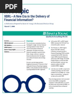 I used to think that cyberspace was 50 years away. What I thought was 50 years away, was only 10 years away. And what I thought was 10 years away... it was already here. I just wasnt aware of it yet. Bruce Sterling, science fiction author Just as cyberspace crept up on Mr. Sterling, eXtensible Business Reporting Language (XBRL) is creeping up on the world of finance. It is not 10 years away. Instead, it has arrived, unbeknownst to many financial executives, and it will change the way financial information is reported in the U.S. and around the world. Because XBRL is still in the early adoption phase, financial executives have the chance to shape the future by participating in XBRLs development now. XBRL is not technology, but a set of standards, called taxonomies, built using the eXtensible Markup Language (XML). Like accounting standards that direct financial executives how to account for and report business transactions and financial information, XBRL directs executives how to report financial information in the electronic age so that all constituents accessing the data understand the information they are getting. It does not replace or affect the system of accounting standards, it enables computer translation of financial information that can be interpreted by any XBRL enabled user, essentially bar coding for financial information. Financial executives face constant pressure to build a finance function that adds value by providing meaningful information to enable good business decisions. To accomplish this goal, finance personnel must spend less time keying data and more time analyzing it. Most financial analysis still uses spreadsheet programs into which the relevant financial information must be keyed. XBRL has the potential to make re-keying of data an activity of the past.
