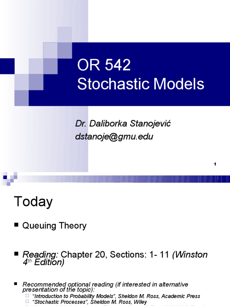 Introduction to Probability Models, Sheldon M. Ross, Academic Press Stochastic Processes, Sheldon M. Ross, Wiley Stochastic Modeling and the Theory of Queues, Ronald W. Wolf, Prentice Hall
