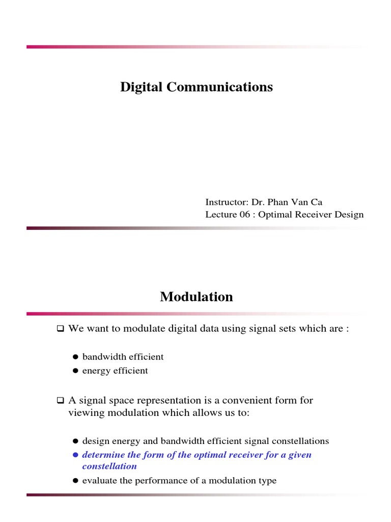 Instructor: Dr. Phan Van Ca Lecture 06 : Optimal Receiver Design
