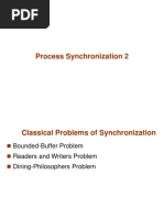 n). This solution is very similar to the above solution, but with an important concept of dirty and clean for the chopsticks. Explain how this concept prevents starvation. 8. Using monitor to implement a Coke machine. The machine has three functions: putMoney(), getCoke() and addCoke(). Assume that we only use one kind of money and have only one type of Coke. Hence the functions take no parameters. The machine can store at most N cans of Coke. Your monitor needs to guarantee that putMoney() only returns when there is no outstanding money in the machine, getCoke() only returns when there is Coke in the machine, and addCoke() only returns when there is an empty slot in the machine. Outstanding money is defined as money that is put into the machine, but no Coke has been sold for that money. 9. Consider the following three scenarios. One of them is best described as deadlock, one as livelock and one as starvation. Explain which is which. (a) Philosophers A and B want to pick up a chopstick. They try to be nice by waiting for one second if the other one is about to take the chopstick. They both try to pick up the chopstick, wait for a second, try again, wait again, ad infinitum. (b) Process A is waiting for the result of a computation performed by process B. However, A has higher priority than B, and so the OS prefers A and refuses to give CPU time to B. Therefore, both A and B are stuck. (c) Processes A and B communicate through a buffer. Process A is waiting for the buffer to be more full before it reads it. Process B is waiting for the buffer to be less full before it writes more data to it. Therefore, both A and B are stuck. 10. Imagine you're designing an OS and you're concerned with deadlocks. You're free to define rules which processes should obey. However, you want to make sure that processes that play by the rules will not get deadlocked, and processes which break the rules only hurt themselves. Would any of these techniques _alone_ solve the problem? (a) Banker's algorithm - require that each process lists the resources it will need, and deny requests for resources that have not been listed. (b) Resource ordering - if a process holds resource X, deny requests from that process for a resource Y that is lower in the partial order. (c) Detection and recovery - kill the process(es) that caused the deadlock. What about (b) and (c) together?