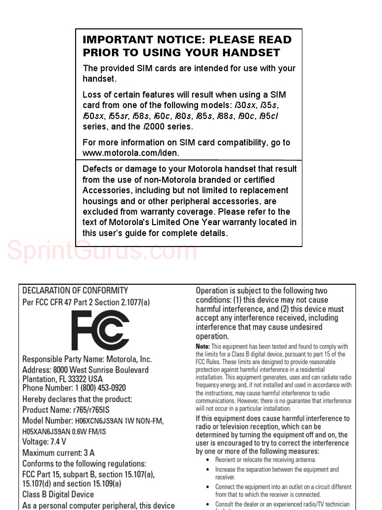 Responsible Party Name: Motorola, Inc. FCC Rules. These limits are designed to provide reasonable