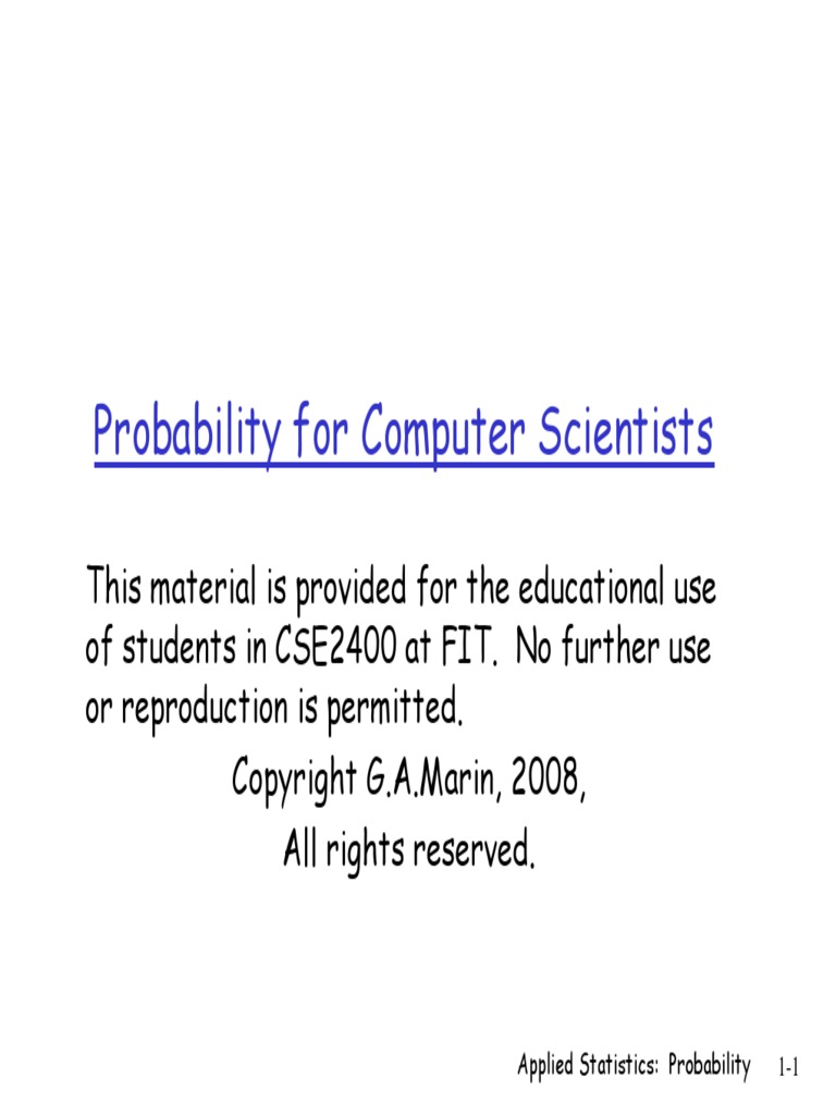 reserves. Helped Texaco analyze the bidding process for offshore oil leases. Helped US Navy search for submarines and develop ASW tactics. Helped US Navy evaluate capabilities of future forces. Helped IBM analyze performance of computer networks in health, airline reservation, banking, and other industries. Evaluated new networking technologies such as IBMs Token Ring, ATM, Frame Relay Analyzed meteor burst communications for US government (and weather and earthquakes...) Applied Statistics: Probability