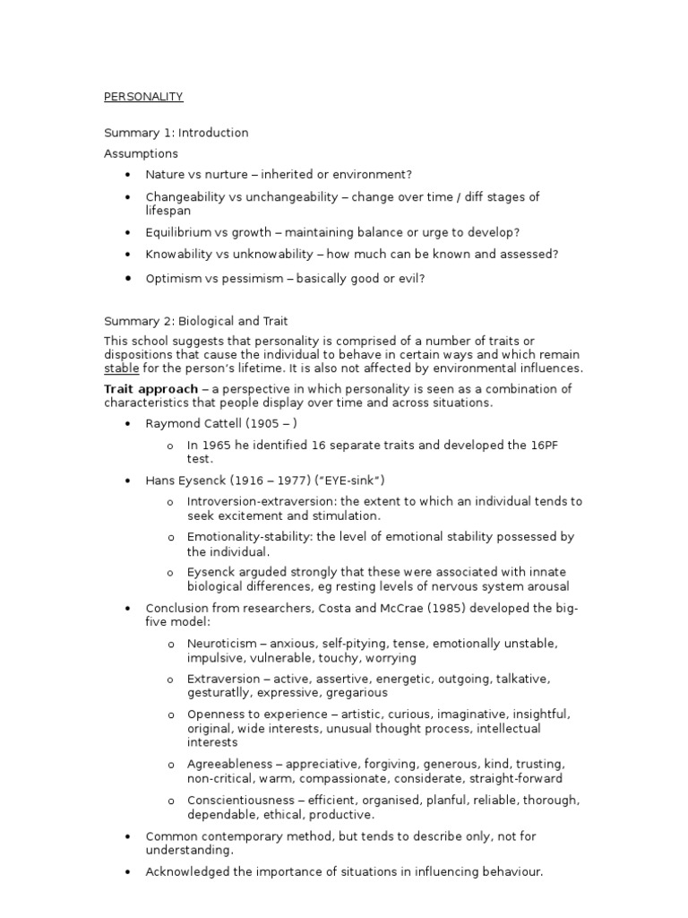 o Neuroticism – anxious, self-pitying, tense, emotionally unstable,
