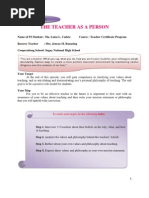 Learning Activity 4: The Global Teacher Your Goal: At the end of this activity, you will gain competence in developing yourself become a global teacher. Your Tasks: The rapid change in technology makes the world smaller and links people with one another in one global community. To become an effective teacher, you should be endowed with skills and knowledge to make you a global teacher. To reach your goal, do the following tasks: Step 1: Interview teachers about their ideas on the knowledge, skills, and values that a global teacher should possess. Step 2: Analyze and synthesize their responses. Step 3: Reflect on how you can become a global teacher. My interview Guide: 1. 2. 3. What are the characteristics of a global teacher? What knowledge should the global teacher acquire? Why do you think teachers posses the knowledge, skills, and values?