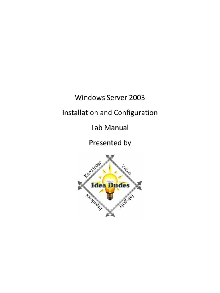 Windows Server 2003 Installation and Configuration Lab Manual Presented by