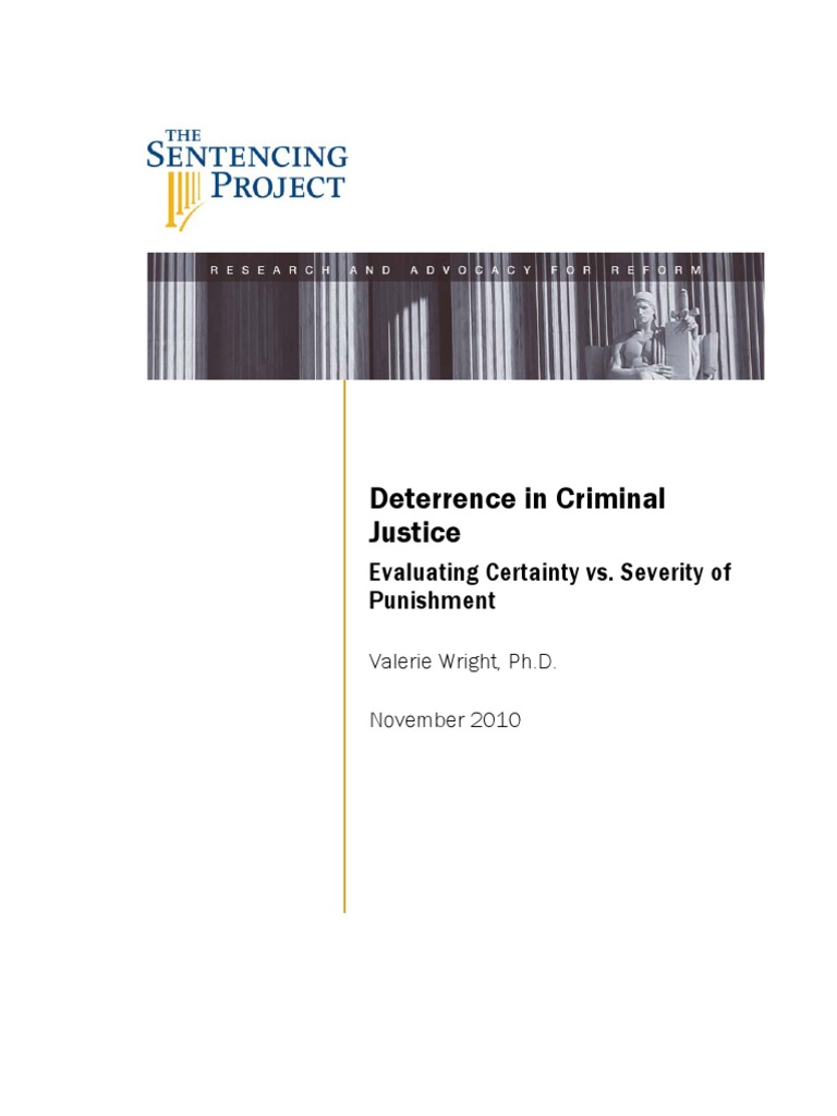 nations prisons and jails, and the U.S. leads the world in its rate of incarceration. Sentencing systems and incarceration traditionally have a variety of goals, which include incapacitation, punishment, deterrence and rehabilitation. In recent decades, sentencing policy initiatives have often been enacted with the goal of enhancing the deterrent effect of the criminal justice system. Under the rubric of getting tough on crime, policies such as mandatory minimums, truth in sentencing, and three strikes and youre out have been designed to deter with the threat of imposing substantial terms of imprisonment for felony convictions. While the criminal justice system as a whole provides some deterrent effect, a key question for policy development regards whether enhanced sanctions or an enhanced possibility of being apprehended provide any additional deterrent benefits. Research to date generally indicates that increases in the certainty of punishment, as opposed to the severity of punishment, are more likely to produce deterrent benefits. This briefing paper provides an overview of criminological research on these relative impacts as a guide to inform future policy consideration.