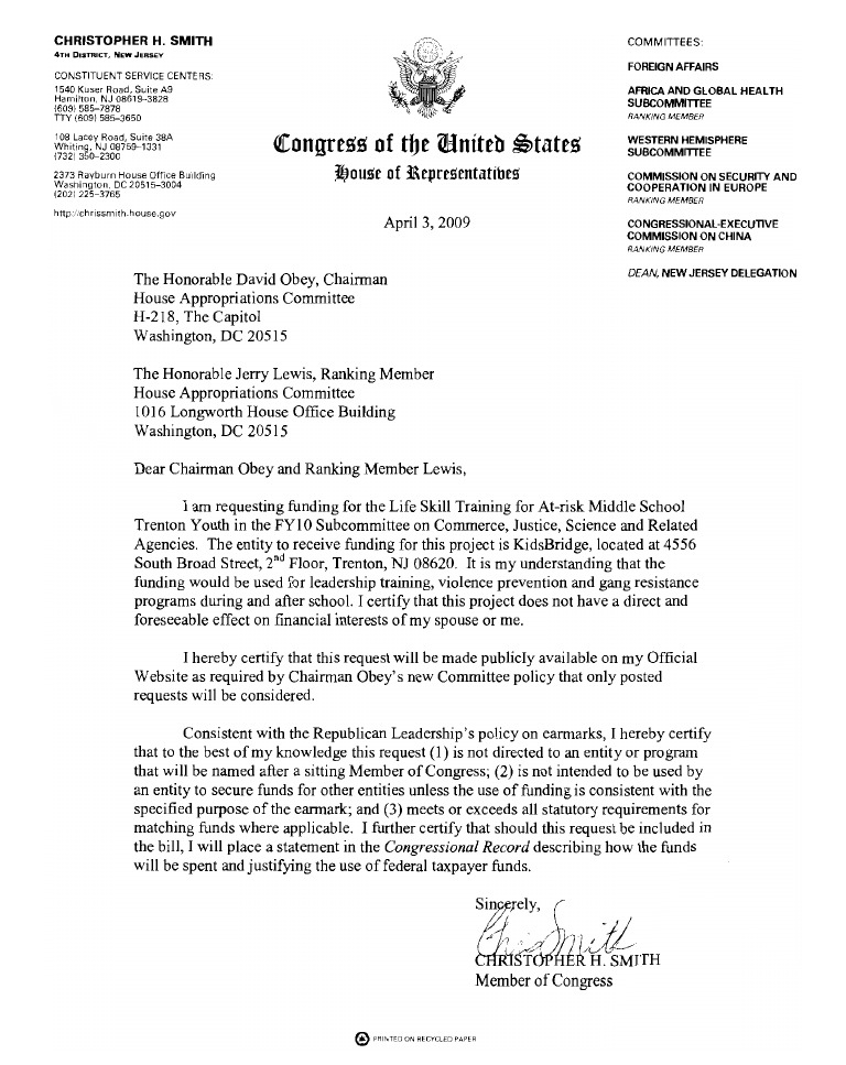 Trenton Youth in the FYI 0 Subcommittee on Commerce, Justice, Science and Related