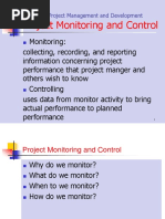 Project Monitoring & Control Process Once the project scope is agreed upon in terms of clearly defined deliverables, the schedule is finalized at its optimum level, and the budgets sanctioned, the project is taken-up for execution. It is the responsibility of the project manager during the project execution phase to keep these three parameters under control till completion. Project success is measured as the ability to complete the project; According to desired specifications Within the specified budget Within the promised time schedule While keeping the customer and stakeholders happy.