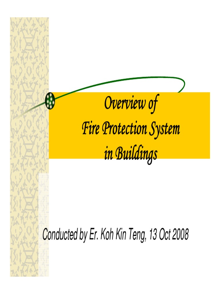 Passive Fire Protection Provision: Examples are fire compartments, fire resistance, fire stops,fire collars Active Fire Protection Provision: Examples are automatic sprinklers, wet & dry rising mains, detectors, hydrants, extinguishers, smoke controls, etc.