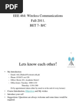 Basic Wireless Channel: Path Loss, Shadowing, Multipath Fading, Channel Models, channel capacity, performance in fading channels Cellular concepts, frequency reuse Diversity ( Time, Frequency, space) Equalization Spread spectrum and Multicarrier Modulation Multiuser systems Multi Input and Output (MIMO) systems