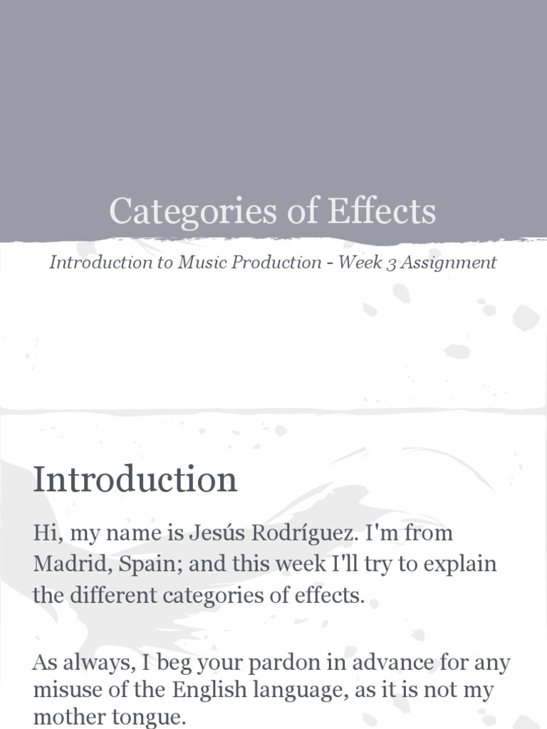 Hi, my name is Jess Rodrguez. I'm from Madrid, Spain; and this week I'll try to explain the different categories of effects. As always, I beg your pardon in advance for any misuse of the English language, as it is not my mother tongue.