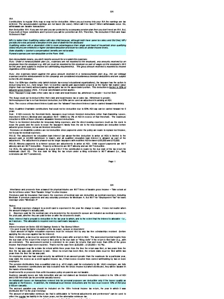 Medical Expenses Taxes (RIPS) Interest (HIPPE) Charity Casualty Loss Misc Itm Ded