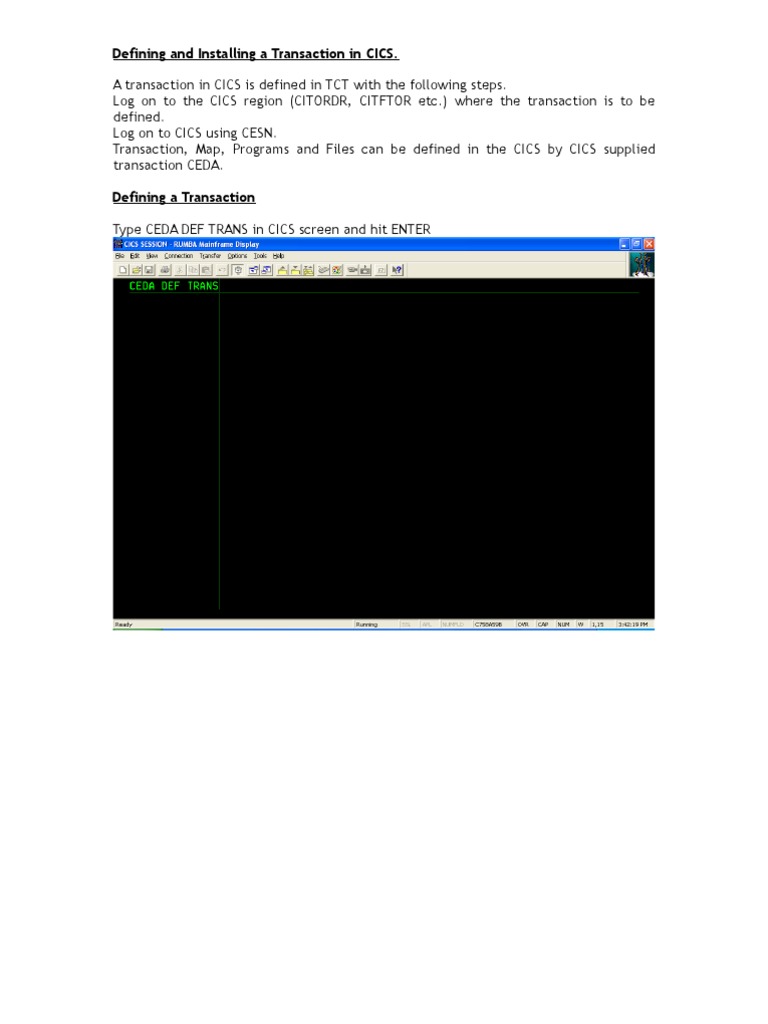 Type CEDA DEF TRANS in CICS screen and hit ENTER